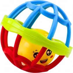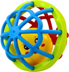 Binnenin zit een gele kunststof kern die bij het schudden een zacht rammelend geluid maakt en zo interactie en nieuwsgierigheid bevordert. De ergonomische vorm past perfect in kleine kinderhanden en het lage gewicht maakt hanteren eenvoudig.