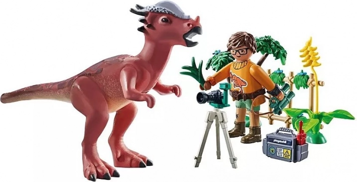 PLAYMOBIL Dinos: observatie van de Stygimoloch – dinosaurusfiguur, onderzoeker met uitrusting en kenniskaart. Duurzame set van 80% eco-materialen.