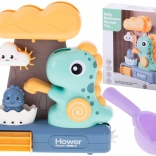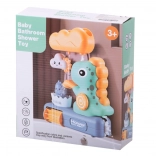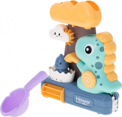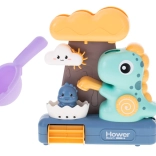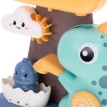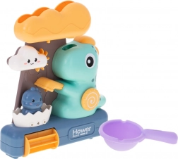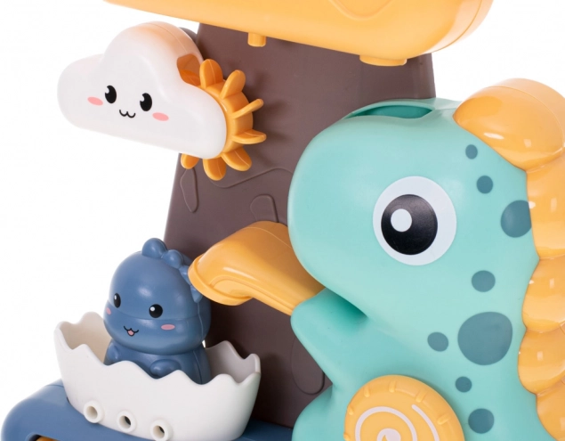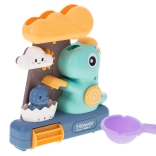 Het kinderspeeltje met dinosaurussen en waterwiel is een geweldige manier om de badtijd van kleine kinderen op te fleuren. Het spel bestaat uit het gieten van water in een bovenste container in de vorm van een grote wolk, vanwaar het water vanzelf door alle delen van het speeltje stroomt, wat visueel plezier voor kinderen biedt.