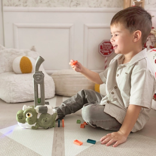 Kleurrijke dinosaurusdomino-trein biedt een unieke manier om kinderen te vermaken en tegelijkertijd hun motorische vaardigheden te ontwikkelen. De trein is ontworpen om automatisch domino te plaatsen en zo eindeloze combinaties en patronen te creëren, wat de creativiteit en planningsvaardigheden van kinderen stimuleert. Bovendien is het speelgoed uitgerust met geluiden en lichtjes, die het spel interactiever en aantrekkelijker maken.
