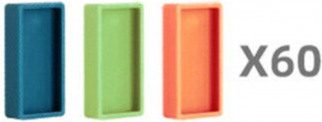 - - 60 domino-steentjes (oranje, blauw, groen)