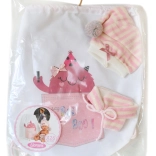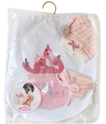 Deze elegante set bestaat uit twee kledingstukken en een praktische rugzak, die de pop een modieuze uitstraling geeft. Met zorg en liefde gemaakt in Spanje, wat een hoge kwaliteit en originaliteit van het product garandeert.