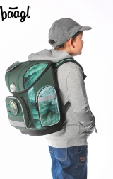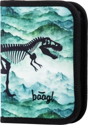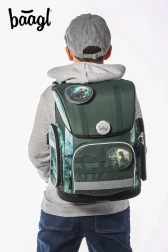 Ontdek de complete Baagl Ergo Dino schoolset voor kinderen vanaf groep 3. Deze set bevat een ergonomische schooltas, een etui met één laag, een gymschoenenzak, een kinderschort en een nekportemonnee, allemaal met een uniek dinosaurusthema.