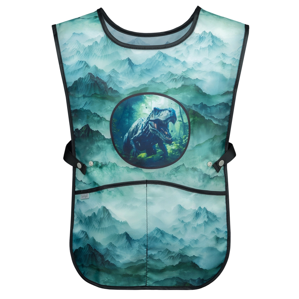 Het kinderschort DINO is een praktisch schort voor beeldende vorming of handvaardigheid, uitgerust met twee zakken.