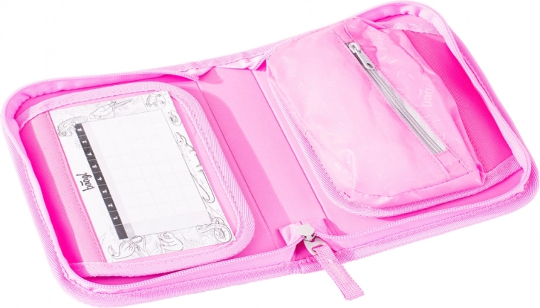 De etui heeft ook een zakje voor kleine spullen, waar scholieren hun kleine essentials kunnen opbergen, en een venstertje voor het lesrooster voor een betere organisatie van de schooldag.