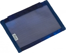 De portemonnee is gemaakt van gerecycled textielmateriaal met verstevigde randen voor een langere levensduur. Het verstelbare koord met veiligheidssluiting zorgt voor comfortabel en veilig dragen om de nek, en de klittenband maakt snel openen en sluiten gemakkelijk.