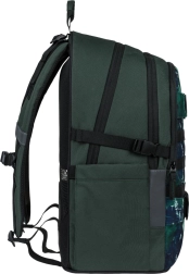 Schoolrugzak Skate Forest is een populaire keuze voor leerlingen vanaf de derde klas van de basisschool dankzij de lichte constructie en de mogelijkheid om een skateboard te bevestigen. Met zijn anatomisch gevormde rug en volledig verstelbare riemen biedt hij comfort en aanpassing aan het individuele postuur. De rugzak is gemaakt van gerecycled waterdicht materiaal en heeft reflecterende elementen voor extra veiligheid. Hij bevat drie ruime vakken met organizer en een gewatteerd laptopvak.