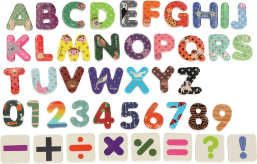 Inclusief diverse leermiddelen zoals magnetische letters, cijfers, krijtjes en stiften.