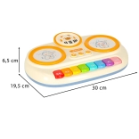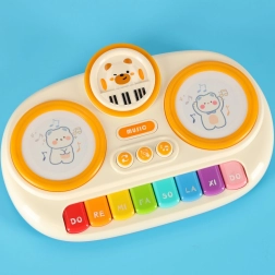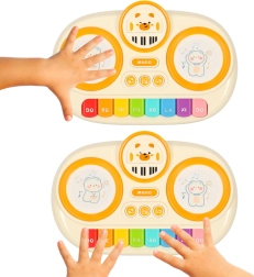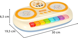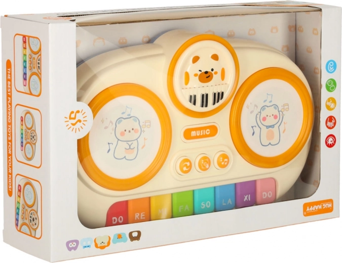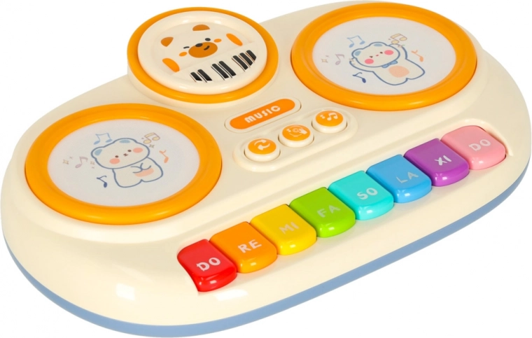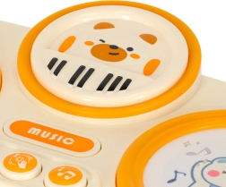 - De touch-technologie van het keyboard maakt gebruik van zachte, materiaalvormige schijven met beermotieven die oplichten en het kinderen mogelijk maken ritmes te maken met hun handen.