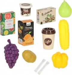 Bevat 36 onderdelen, waaronder fruit, groenten, yoghurt, drankjes en andere items, evenals een speeltelefoon en kleurrijke stickers. Dit veilige en duurzame speelgoed is ontworpen met het oog op kinderveiligheid, zonder scherpe randen, en is ideaal voor creatieve scenario’s en realistische ervaringen.