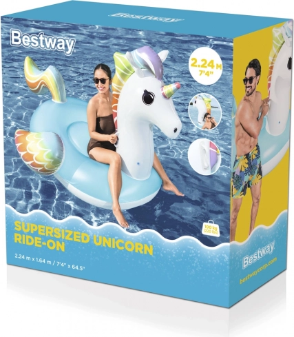 Beleef zomers plezier met de XXL opblaasbare eenhoorn van Bestway! Met afmetingen van 224 x 164 cm is hij ideaal om te ontspannen op het water. Stevige handgrepen en hoogwaardig vinyl zorgen voor c... Meer tonen