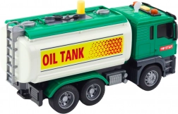 Het bevat een flexibele slang die de mogelijkheid biedt om echt "te tanken" - na het vullen van de tank is het voldoende om de pomp in te drukken en het water begint te stromen. Zo'n spelelement stimuleert de verbeelding en stelt het kind in staat om dagelijkse scenario's van professionele chauffeurs na te bootsen.