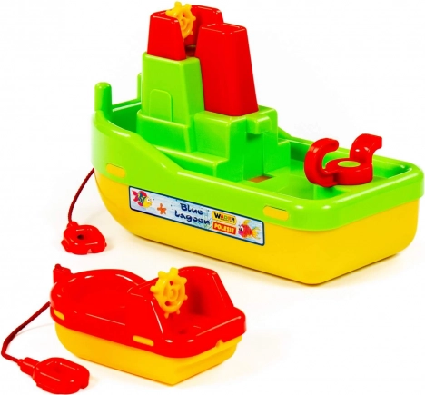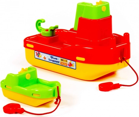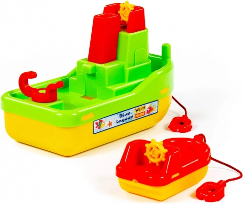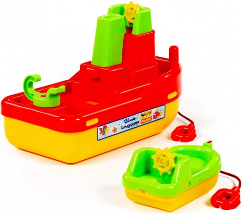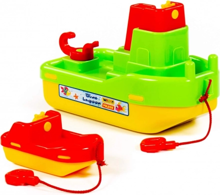 Ontdek de sleepboot Laguna met een klein bootje – een kleurrijke waterset die kleine kapiteins blij maakt. De robuuste afwerking van kwaliteitsplastic garandeert een lange levensduur, terwijl het veilige design ideaal is voor spelen in het water. Dankzij de compacte afmetingen is het speelgoed makkelijk mee te nemen en op te bergen.
