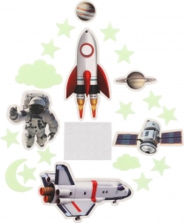 Creëer thuis een nacht vol sterren. De decoraties zijn eenvoudig op de muur of het plafond te bevestigen en lichten na een korte belichting op in het donker. Perfect voor kinderkamers, speelkamers en leeshoekjes. Twee verschillende motieven in de set geven de ruimte fantasie en zacht nachtlamplicht.