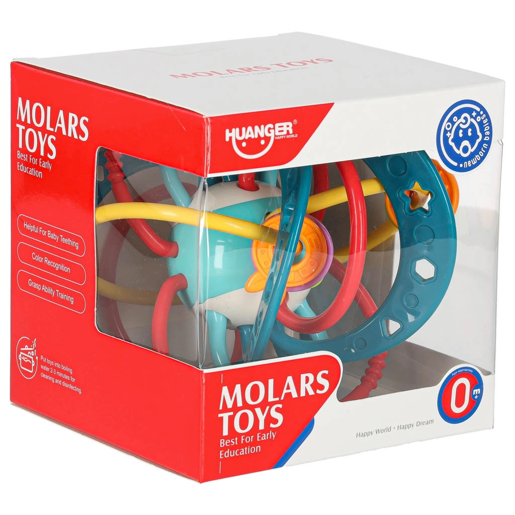 Diverse oppervlakken masseren het tandvlees zachtjes en bieden verlichting tijdens het doorkomen, terwijl schuifbare ringen het kind bezighouden.