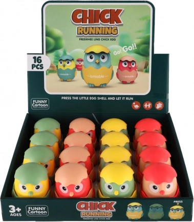 • Gemakkelijke bediening: druk en kijk hoe het kuikentje vooruit zoeft.