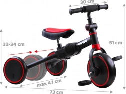 Tiny Bike 3-in-1 is een uitstekende keuze voor de eerste stapjes in de wereld van het fietsen. Dankzij het doordachte ontwerp bouw je hem eenvoudig om op basis van de leeftijd en behoeften van je kind – van een stabiele loopfiets voor de allerkleinsten, via een driewieler met pedalen tot een balansfiets om het evenwicht te trainen. Ombouwen kan zonder gereedschap en kost slechts enkele minuten.