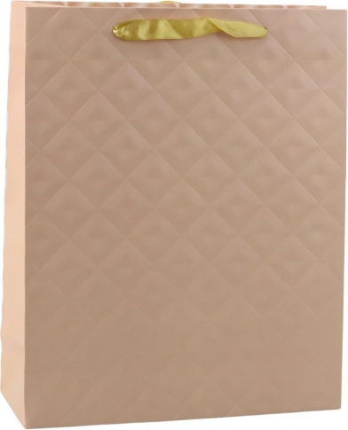 Elegante cadeautas met beige reliëf, geschikt voor elke gelegenheid. Gemaakt van hoogwaardig papier, met satijnen handvatten en een modern ontwerp.