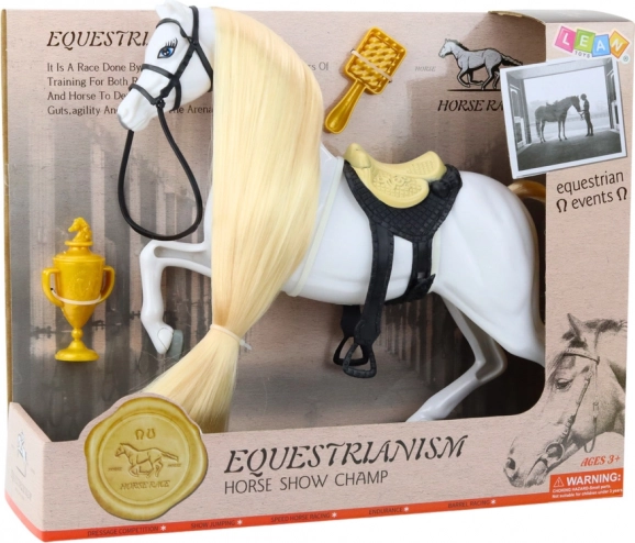 De set met het schitterende paard is perfect voor alle jonge paardenliefhebbers. Bevat een gouden beker, een manenborstel, een zadel en een hoofdstel, die zorgen voor extra realisme en het kind in staat stellen het paard voor te bereiden op diverse activiteiten zoals ritjes of wedstrijden. Elk onderdeel is zorgvuldig ontworpen voor maximaal speelplezier en het stimuleren van creativiteit.