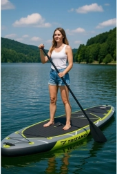 We presenteren de opblaasbare paddleboard SUP Trizand, gemaakt van zeer duurzaam, meerlaags PVC dat bestand is tegen scheuren en slijtage. Dit model is ideaal voor intensief gebruik, ook onder uitdagende omstandigheden.