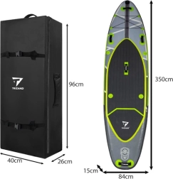 De uitzonderlijke paddleboard SUP Trizand met een lengte van 350 cm is een uitstekende keuze voor beginners. Dankzij de brede en stabiele constructie biedt hij eenvoudige bediening en veiligheid tijdens de eerste ritten. Krijg alles wat je nodig hebt om te varen dankzij de complete set met een verstelbare peddel, zitje, pomp en extra accessoires.