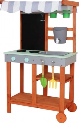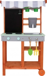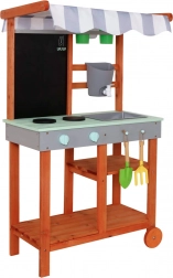 Deze duurzamen stabiele keuken is speciaal ontworpen voor gebruik buitenshuis, om zowel ruw spel als weersinvloeden te weerstaan. De keuken heeft geen scherpe randen en het ergonomische ontwerp is veilig voor elke kleine kok.