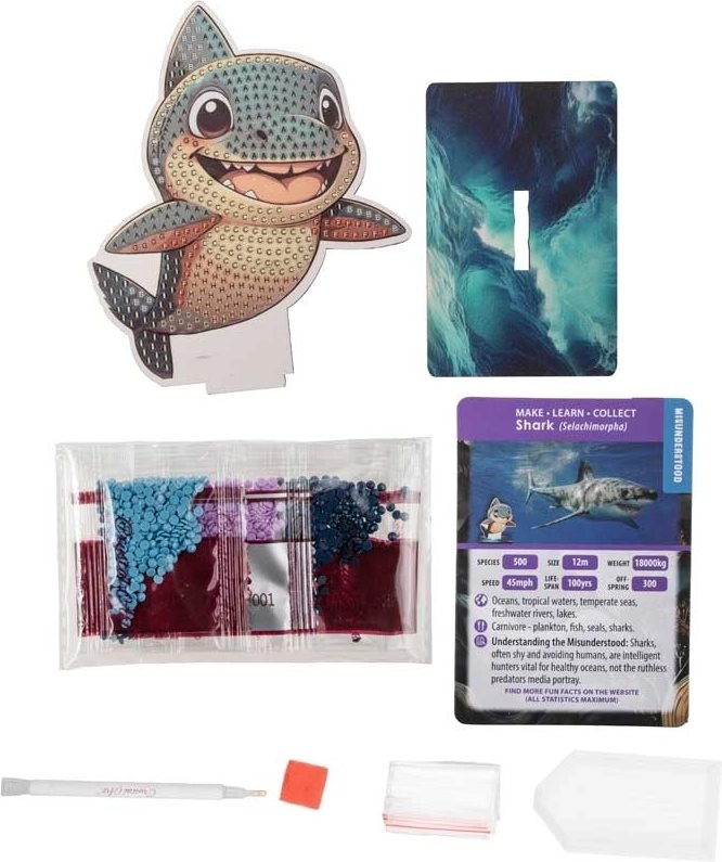 Geniet van creatieve fun met diamond painting, ideaal voor alle leeftijden. Breng eenvoudig de kleine steentjes aan met de pen en zie hoe jouw indrukwekkende haaienafbeelding tot leven komt.