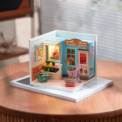 Rolife DIY Fruitwinkel is een betoverende miniatuurreplika van een fruitwinkel die de sfeer van een zomerse markt oproept. Breng de vreugde van vers fruit in huis met dit gedetailleerde en creatieve project.