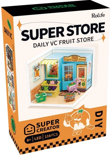 Geniet van plezier en voldoening tijdens het bouwen van dit DIY poppenhuis uit de Rolife-serie. Dit prachtige modelbouwproject bevat 116 stukken die je tot een kleurrijke fruitwinkel samenstelt, ideaal om elk interieur te verfraaien.