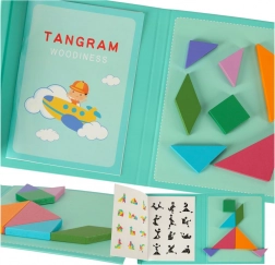 Een leuke en slimme game voor kinderen vanaf 3 jaar: een magnetisch boek met een kleurrijk houten tangram. Dankzij de magneten kunnen kinderen overal vormen leggen zonder stukjes te verliezen. Inclusief een boekje met 96 voorbeelden in zowel kleuren als zwart-wit. Stimuleert logisch denken, creativiteit en fijne motoriek – een ideale Montessori-hulp voor thuis, onderweg en op school.