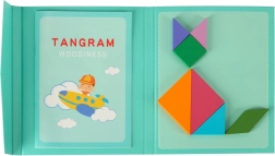 Ontdek de klassieke Chinese puzzel in een modern jasje. Het magnetische tangram-boek combineert een praktische reisverpakking met kwalitatieve houten stukjes die stevig op het magnetische bord blijven zitten. Kinderen kunnen naar de voorbeelden leggen of hun eigen vormen en figuurtjes verzinnen.