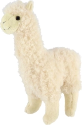 Deze witte pluchen alpaca is gemaakt voor dagelijkse knuffels. Het zachte, luchtige oppervlak voelt prettig aan en de kwalitatieve afwerking met expressieve oogjes, snoet en oortjes geeft haar een realistische en vriendelijke uitstraling. Dankzij de compacte hoogte van 30 cm ligt ze fijn in de armen en past ze perfect als gezellige aanvulling in de kinderkamer.