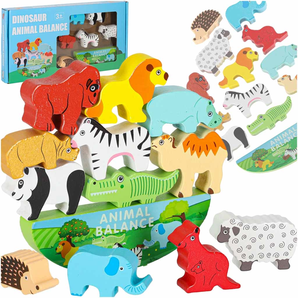 Dit kleurrijke houten evenwichtsspel zal elk kind enthousiast maken. De taak is om dieren op elkaar te leggen en stabiele combinaties te zoeken op de schommelende basis. Kinderen oefenen daarbij fijne motoriek, geduld en logisch redeneren, terwijl ze de vormen en kleuren van safaridieren ontdekken.