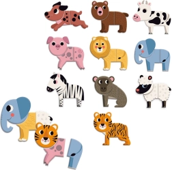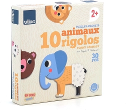 De magnetenset Vilac Grappige Dieren bestaat uit tien dieren, elk samengesteld uit drie delen. Combineer ze naar eigen inzicht en creëer unieke en grappige diercombinaties, zoals bijvoorbeeld een tijgerkop, een koeienlichaam en een olifantstaar. Met deze speelgoedset zijn er geen grenzen aan je creativiteit en verbeelding.
