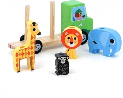 Dit unieke houten speelgoed in de vorm van een opstapbare vrachtwagen combineert bewegende voertuigen en schattige safaridieren. Uw kind beleeft veel plezier aan het herkennen van de dieren en het verzinnen van verhaaltjes. Het speelgoed is ideaal voor de ontwikkeling van fijne motoriek, behendigheid en oog-handcoördinatie.