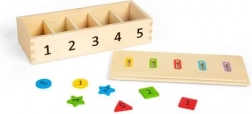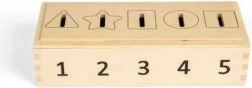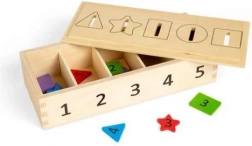Gebruik deze innovatieve kist om het herkennen van cijfers, kleuren en vormen te oefenen. Kinderen kunnen fiches in verschillende kleuren en vormen met cijfers van 1 tot 5 door de bijbehorende openingen laten vallen. Dankzij het dubbelzijdige afneembare deksel is de handling eenvoudig en leuk.