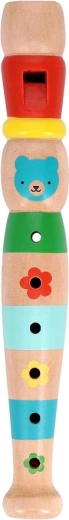 Houten fluit Petit Collage is een geweldig instrument voor de ontwikkeling van muzikaliteit bij kinderen. Het heeft een glad oppervlak, heldere kleuren en een berenversiering, wat de cognitieve ontwikkeling, hand-oogcoördinatie en auditief leren stimuleert.