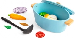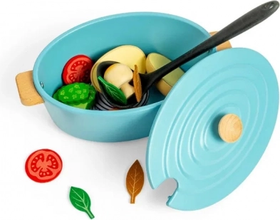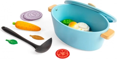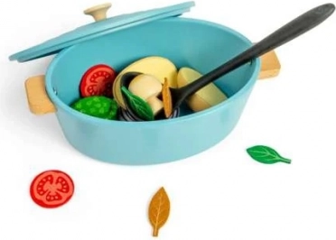 Bereid een smakelijke maaltijd voor het gezin met de kinderovenschaal en het uitgebreide accessoirepakket. Deze speelgoedset biedt veel soorten houten groenten en helpt kinderen sociale en creatieve vaardigheden te ontwikkelen.