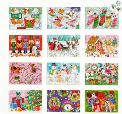 We presenteren een leuke puzzelset die het wachten op Kerstmis verandert in een aftellen vol verrassingen en vreugde. Elk vakje bevat een 48-delige mini-puzzel met afbeeldingen van hondjes die zich bezighouden met winterse bezigheden en feestelijke voorbereidingen, zoals sleetje rijden, een sneeuwpop maken of warme chocolademelk drinken.