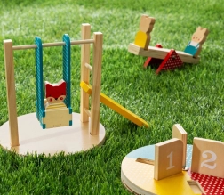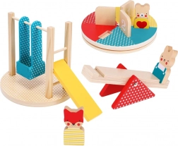 Bereid uw kinderen voor op onvergetelijke momenten op de speeltuin met deze houten set. Het bevat drie dierfiguurtjes die tot leven komen op een fantasierijke speeltuin: