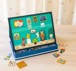 We presenteren het magnetische theater Mijn Museum van Petit Collage, ideaal voor kleine liefhebbers van kunst en creativiteit. Met deze draagbare set kunnen kinderen hun eigen museum stylen, iconische schilderijen en beelden decoreren en nieuwsgierige dierbezoekers ontvangen.