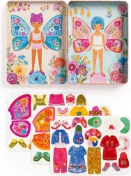 De set bevat twee geïllustreerde scènes met vlindermeisjes die wachten om aangekleed te worden. Probeer meer dan 40 magneten met kleding en vlindervleugels op drie kaarten. Elk stuk kan worden gecombineerd volgens je eigen verbeelding.
