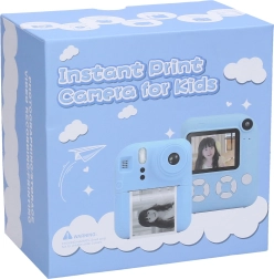 De camera is uitgerust met een 2,4-inch scherm, een ingebouwde 1000mAh batterij die tot 240 minuten gebruik mogelijk maakt, en een USB-kabel die in de verpakking is inbegrepen. De camera is compatibel met micro SD-kaarten tot 32 GB, die niet in de verpakking zijn inbegrepen. Het wordt geleverd met twee rollen fotopapier en een draagriem, waardoor het een ideaal apparaat is voor kleine kunstenaars.