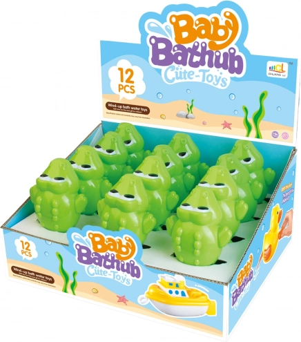 Opwindbare krokodil voor in het water voor plezier tijdens het baden. Afmetingen 15 x 7,5 x 15 cm. Displaydoos met 12 stuks.