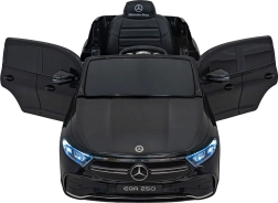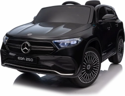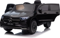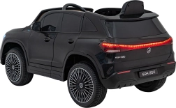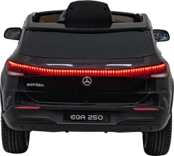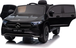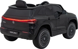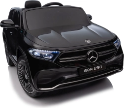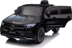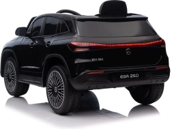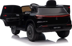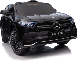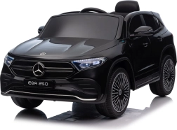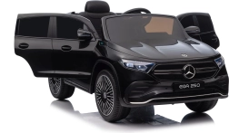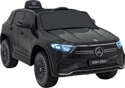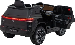 Stijlvolle elektrische kinderauto MERCEDES-BENZ EQA 250 in elegante zwarte kleur met 4×35 W motoren, een krachtige accu 12 V 10 Ah, EVA-schuimbanden, openende deuren en LED-verlichting. Ouders waarderen de 2,4 GHz afstandsbediening met noodstopknop, kinderen genieten van de comfortabele zitting van eco-leer, veiligheidsgordel en het uitgebreide audiopaneel met Bluetooth/USB/AUX/MP3.