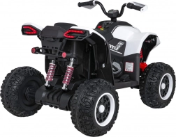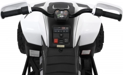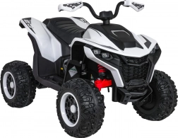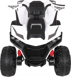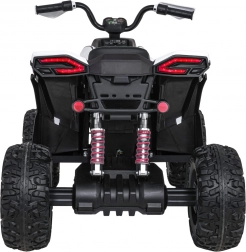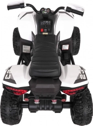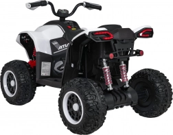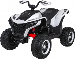 Robuuste kinderquad met 4 x 35 W aandrijving en een 12 V 10 Ah accu voor krachtige prestaties in het terrein. Voorzien van EVA schuimbanden voor stille ritten, twee achterste verstelbare schokdempers voor comfort, LED-verlichting voor en achter en een uitgebreid audiopaneel met USB/MP3/FM/Bluetooth. De veiligheid wordt verhoogd door soepele start, 2.4G afstandsbediening met STOP-knop en een veiligheidsgordel op de zitting van eco-leer.