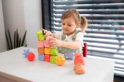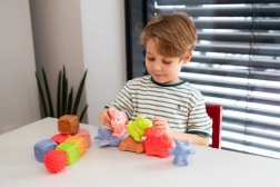 Deze sensorische speelgoedset spreekt elk kind aan door de diverse vormen en kleuren. De speeltjes hebben geen openingen, wat ze ideaal maakt voor in bad.