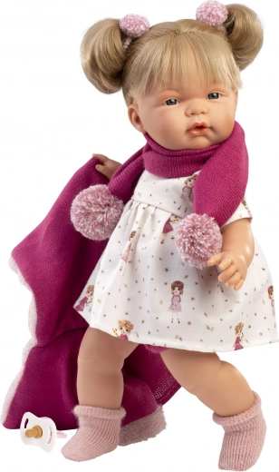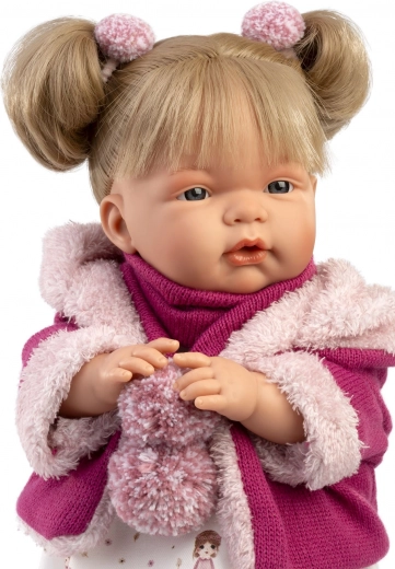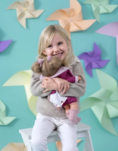 Ontdek de geweldige pop Joelle van het merk Llorens, die een echt kind nauwkeurig nabootst. Wanneer de speen wordt verwijderd, begint ze woorden als 'mama' en 'papa' te zeggen en maakt ze een realistisch huilgeluid dat kan worden gekalmeerd met de magnetische speen. Ze is handgemaakt in Spanje en verpakt in een mooie geschenkdoos.