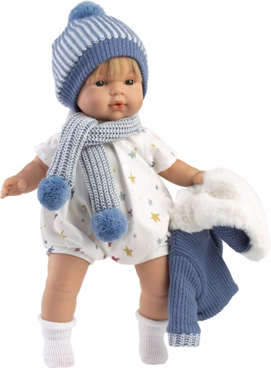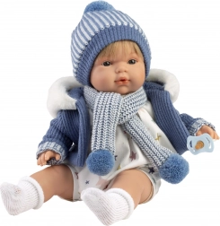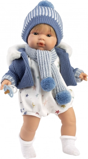 Het hoofd en de ledematen zijn gemaakt van hoogwaardige, verzachte vinyl, wat zorgt voor een realistische uitstraling. Wanneer de fopspeen uit de mond wordt gehaald, zegt de pop “mama”, “papa” en maakt ze het geluid van een huilende baby, dat kan worden gekalmeerd met de magnetische fopspeen.