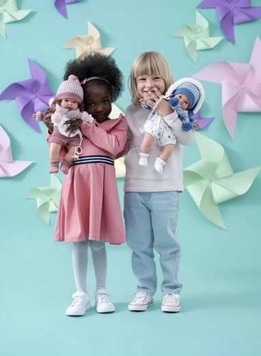 De pop Lola is 38 cm hoog en is met de hand gemaakt in Spanje. Het hoofd en de ledematen zijn gemaakt van hoogwaardig zacht vinyl, wat zorgt voor een aangename aanraking voor kleine handjes.
